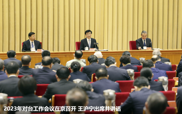 新华社北京5月10日电 2023年对台工作会议9日至10日在京召开。中共中央政治局常委、全国政协主席王沪宁出席会议并讲话。他表示,要以习近平新时代中国特色社会主义思想为指导,全面贯彻党的二十大决策部署和新时代党解决台湾问题的总体方略,深刻领悟“两个确立”的决定性意义,增强“四个意识”、坚定“四个自信”、做到“两个维护”,在以中国式现代化全面推进中华民族伟大复兴进程中,坚定不移推进祖国统一大业。